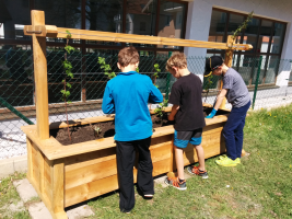 Ein Schwerpunkt in diesem Themenbereich war unser Schulgarten. In unseren Hochbeeten